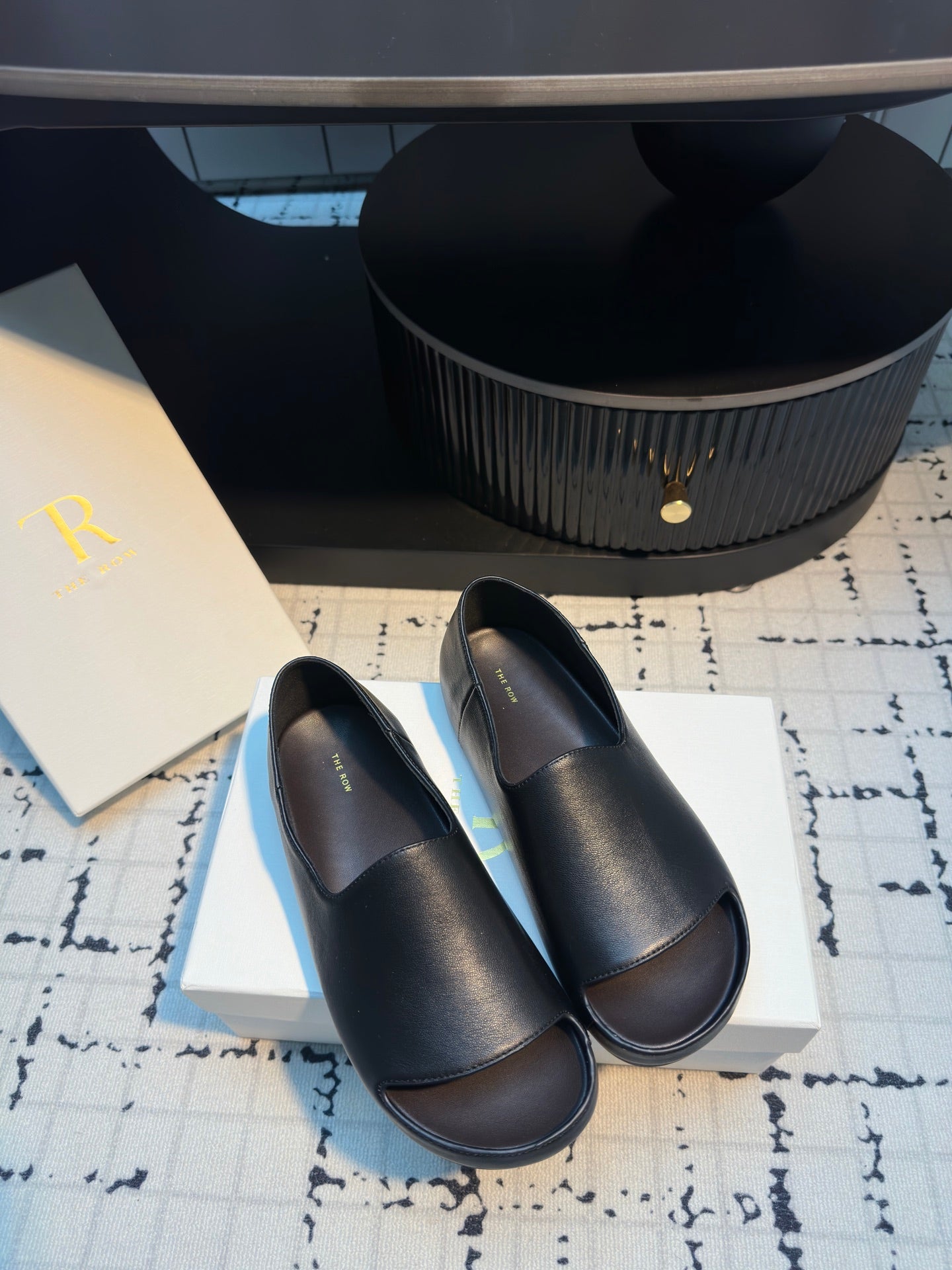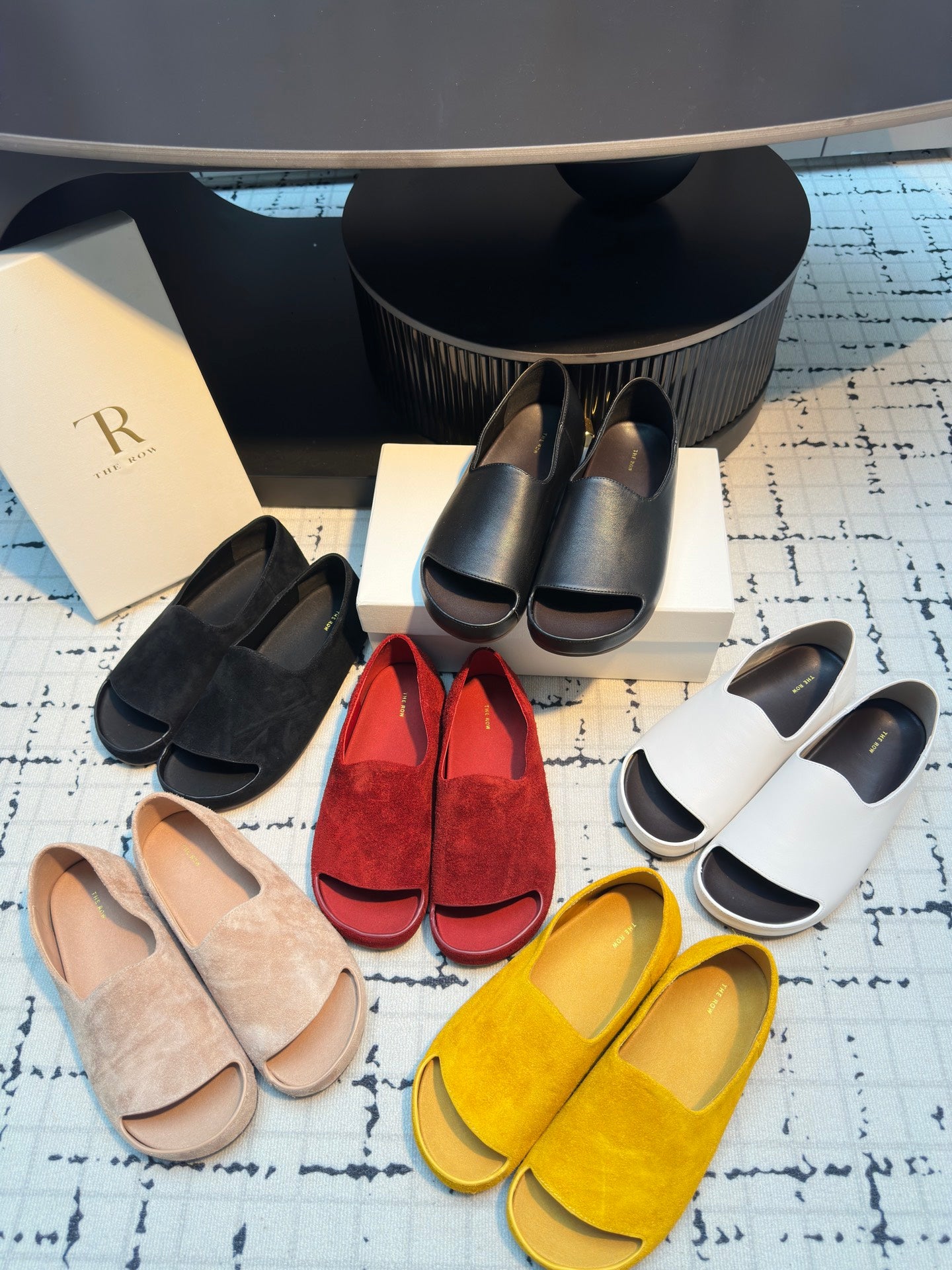 The Row Open-Toe Loafers Birkenstocks Summer Sliper Women Suede Leather TPU sole 2506014TR